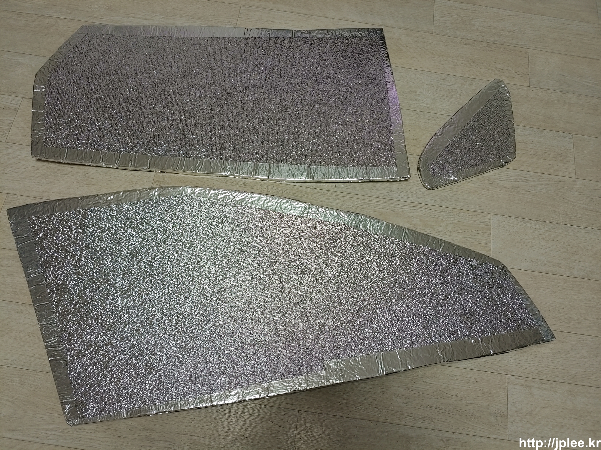 그리고 인터넷에서 검색한 단열재를 사서 본 모양대로 대고 살짝 크게 잘라줬다.