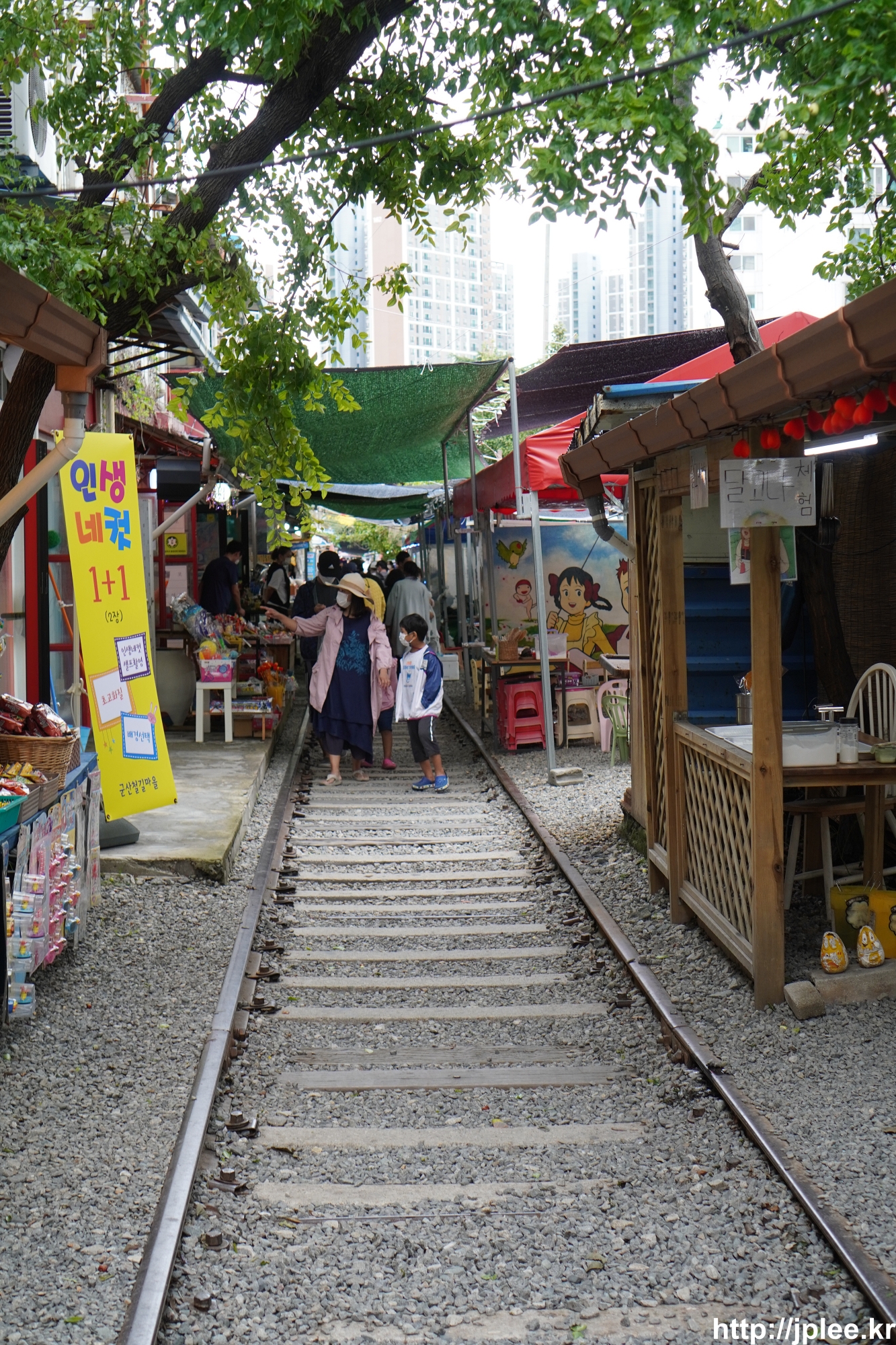 철길 하나를 사이로 상점들이 가득 들어차 있었다.