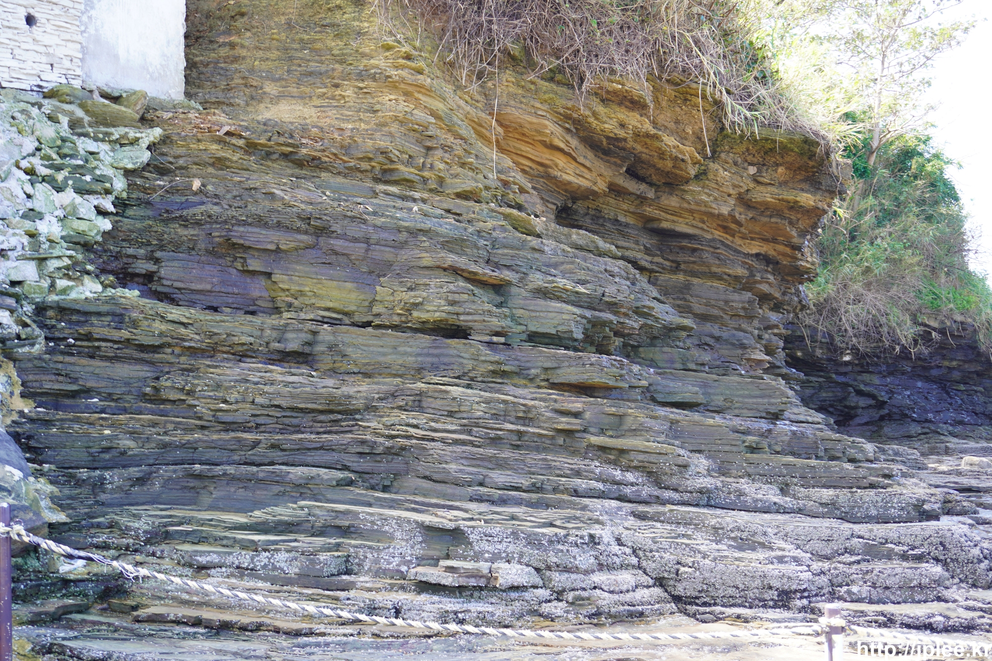 파도에 의해 침식되면서 만들어낸 수천만권의 책이 쌓인것 같은 배경을