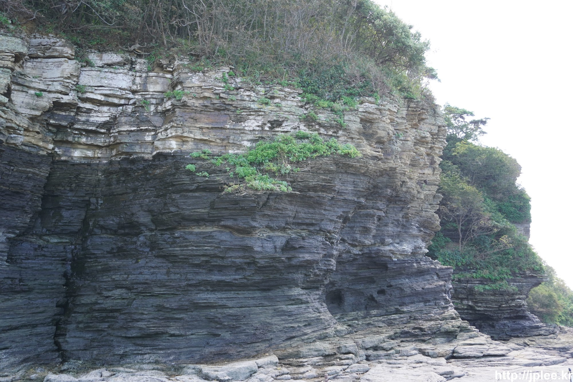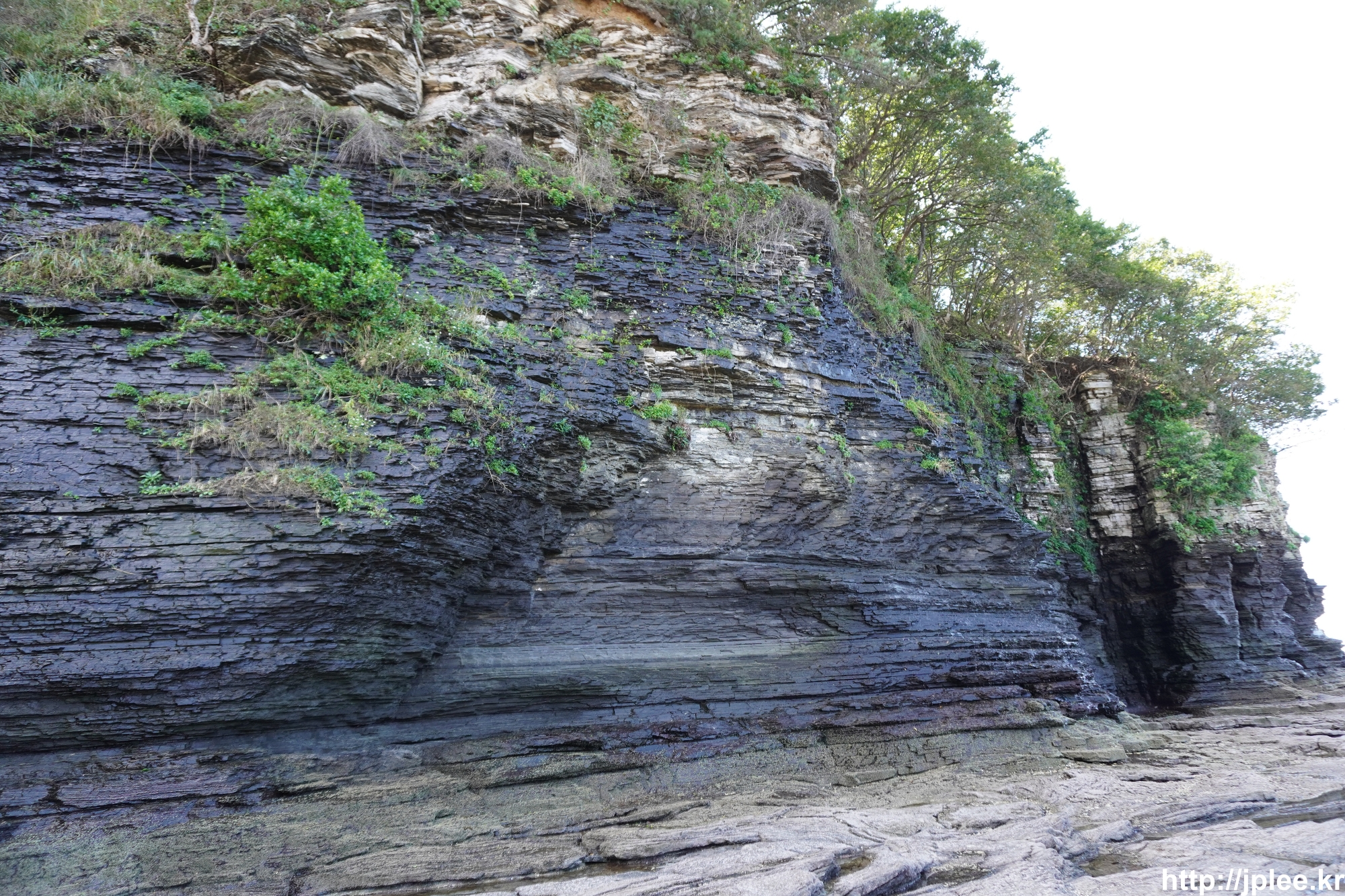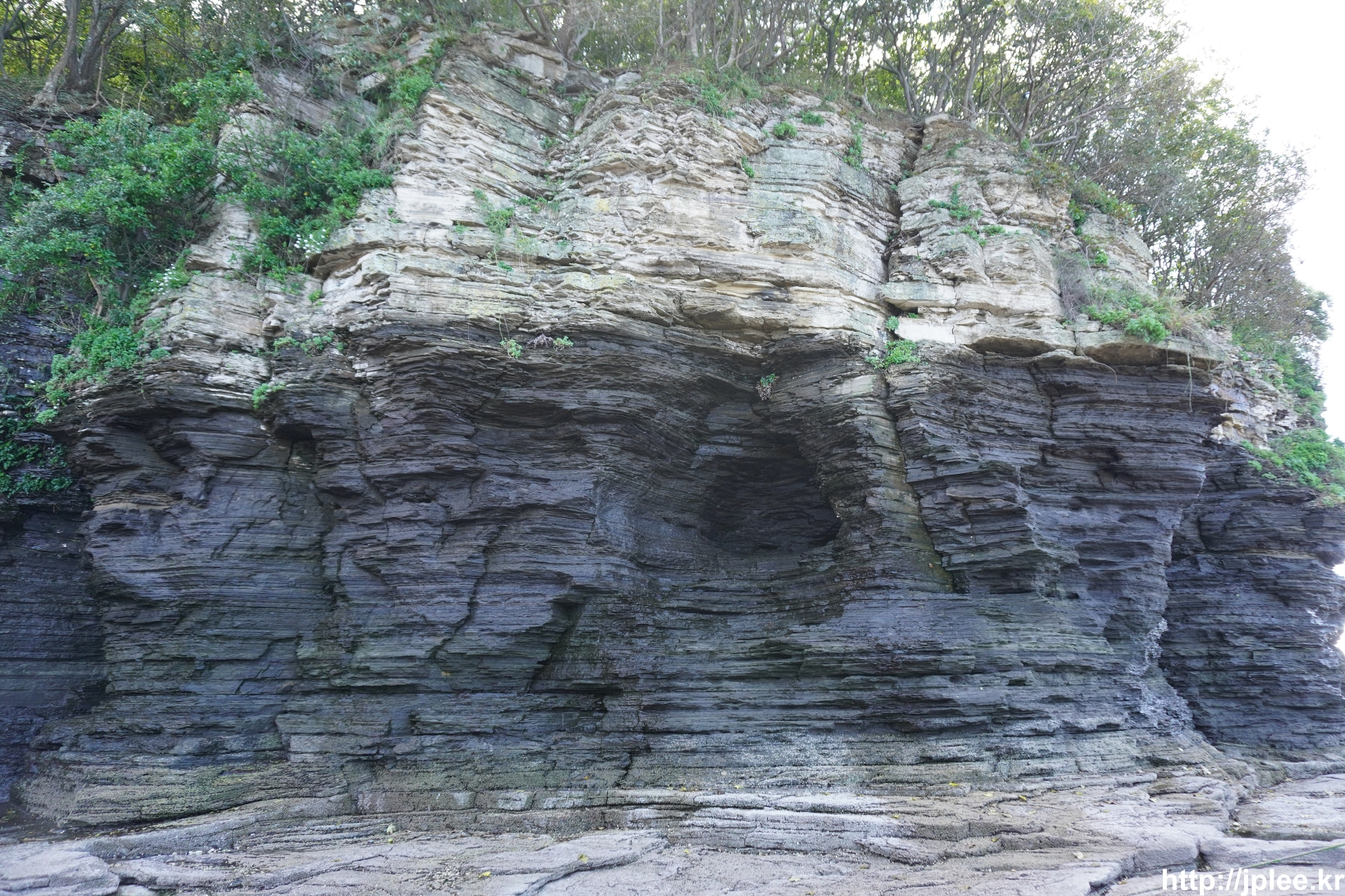 파도에 의해 침식되면서 만들어낸 수천만권의 책이 쌓인것 같은 배경을