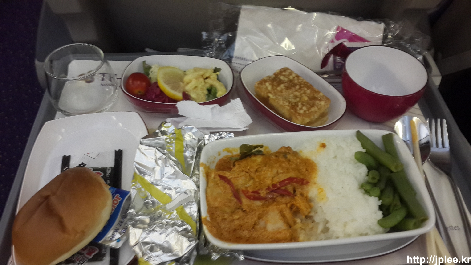 그리고 기내식타임. 메뉴는 돼지고기를 동양적인 소스로 볶은것...과 치킨커리..
