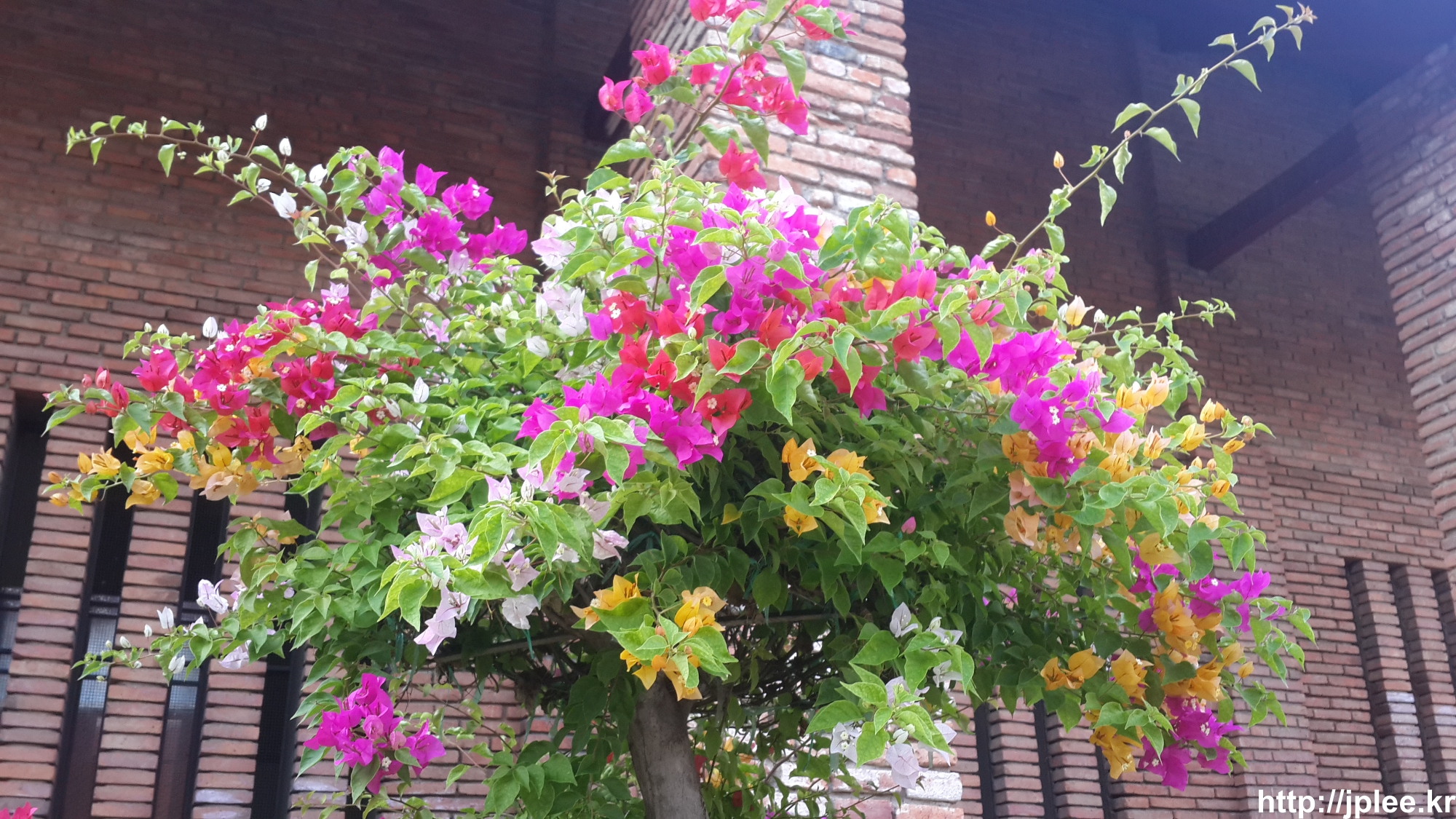 여기서 본 신기한 꽃.. 한 나무에 다양한 색의 꽃이 핀다. 조화가 아닌가 의심해봤지만 생화 맞다..
