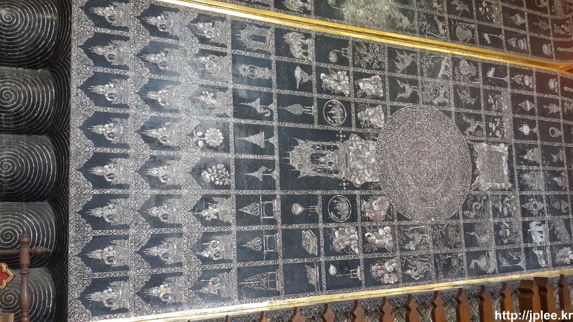 와불의 발바닥에 이렇게 문양들이 새겨져 있었다.