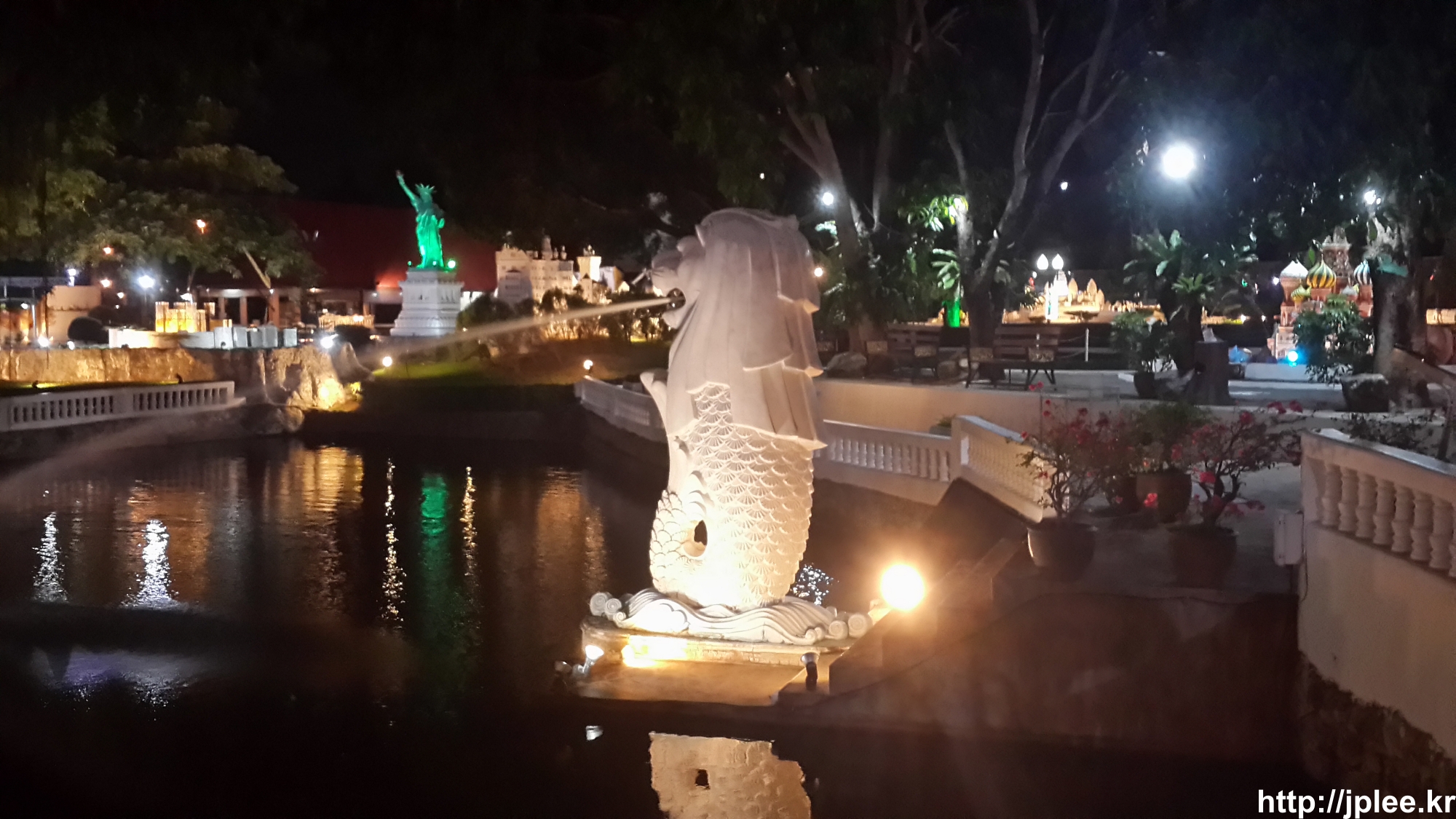 하나의 개울에 시드니의 오페라하우스와 싱가폴의 머라이언, 런던의 타워브리지가 설치되어있다.