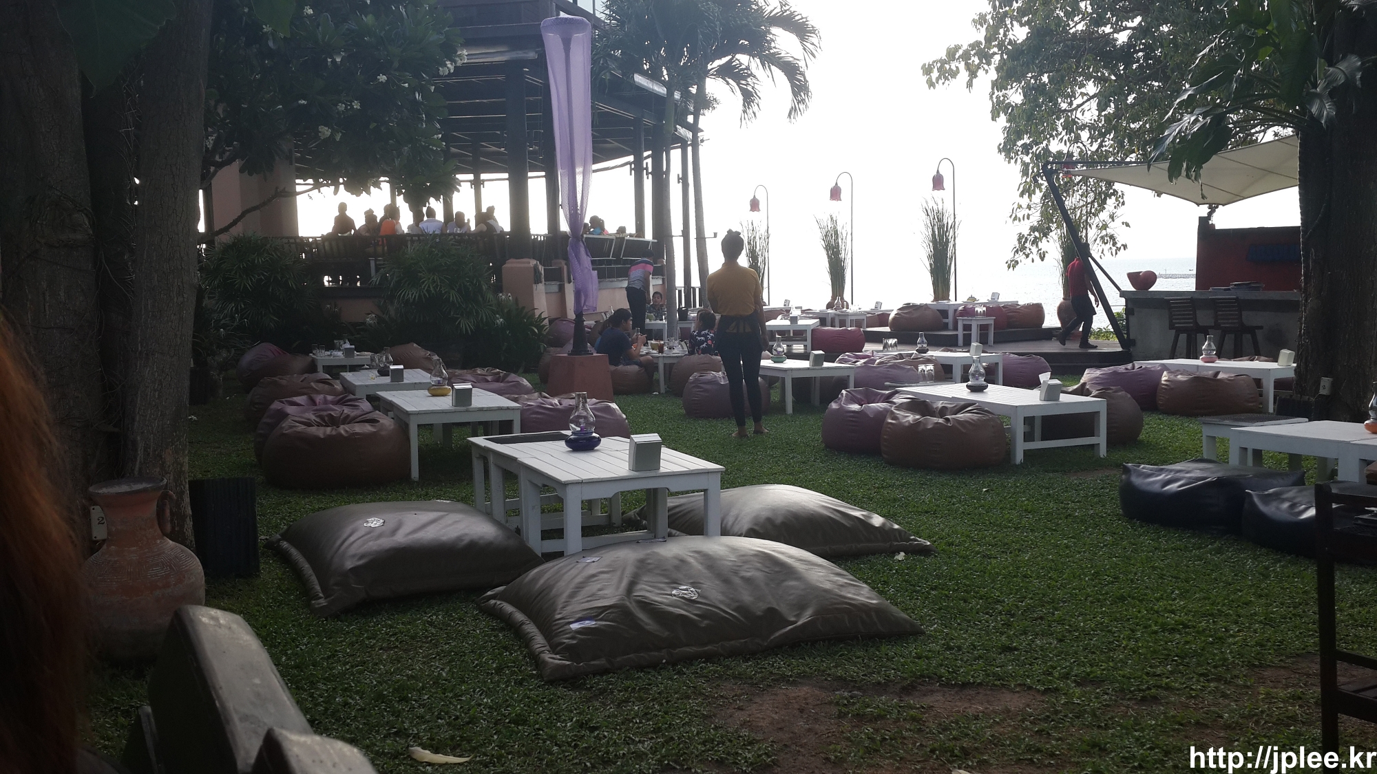 옮긴 장소는 뜰에 있던 자리들, 요상한 쿠션에 앉는 것도 괜찮아 보였지만
