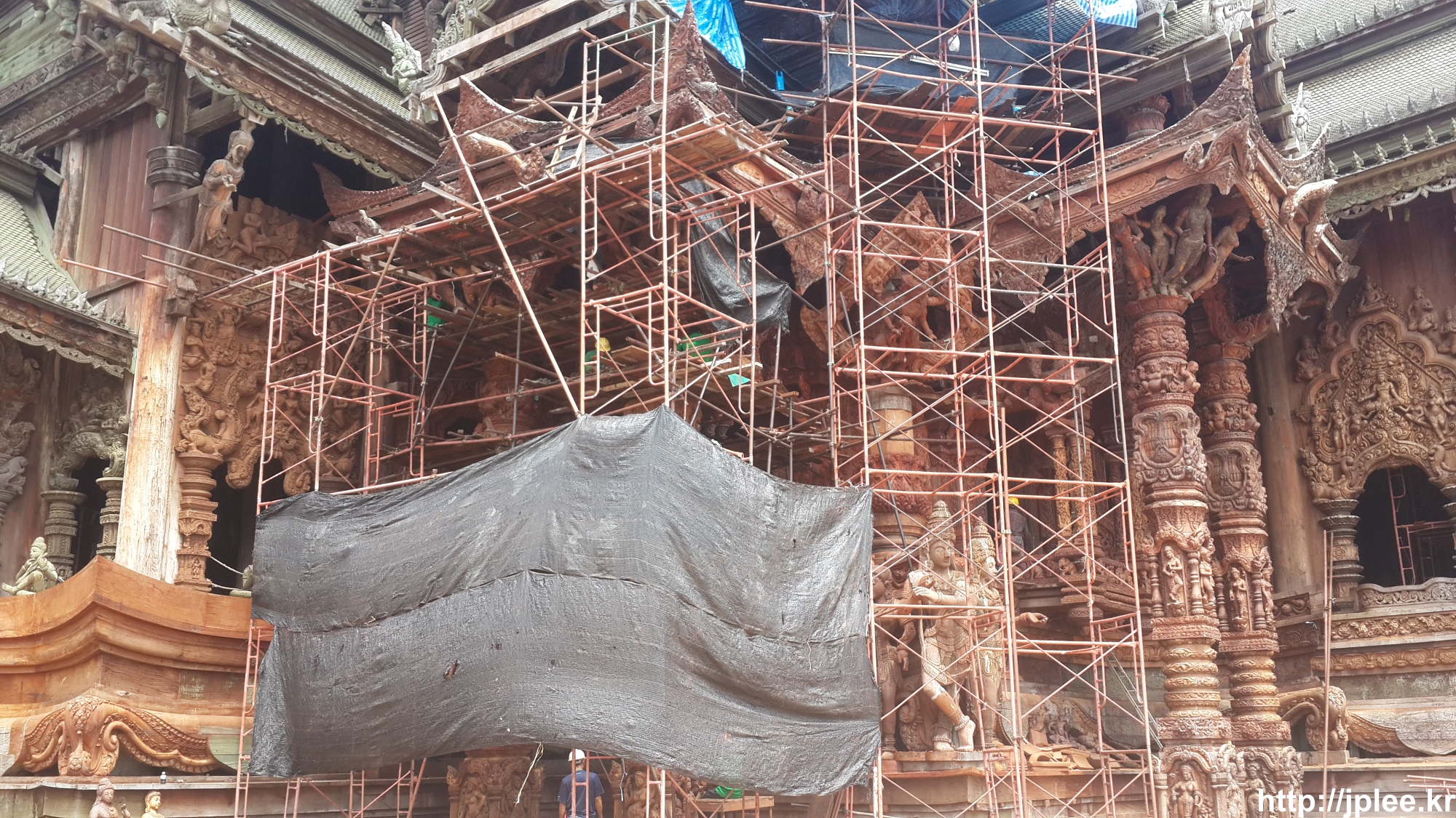 진리의 성전은 태국의 모 자산가가 2대에 걸쳐서 끊임없이 만들고 있는 건축물이라 하는데