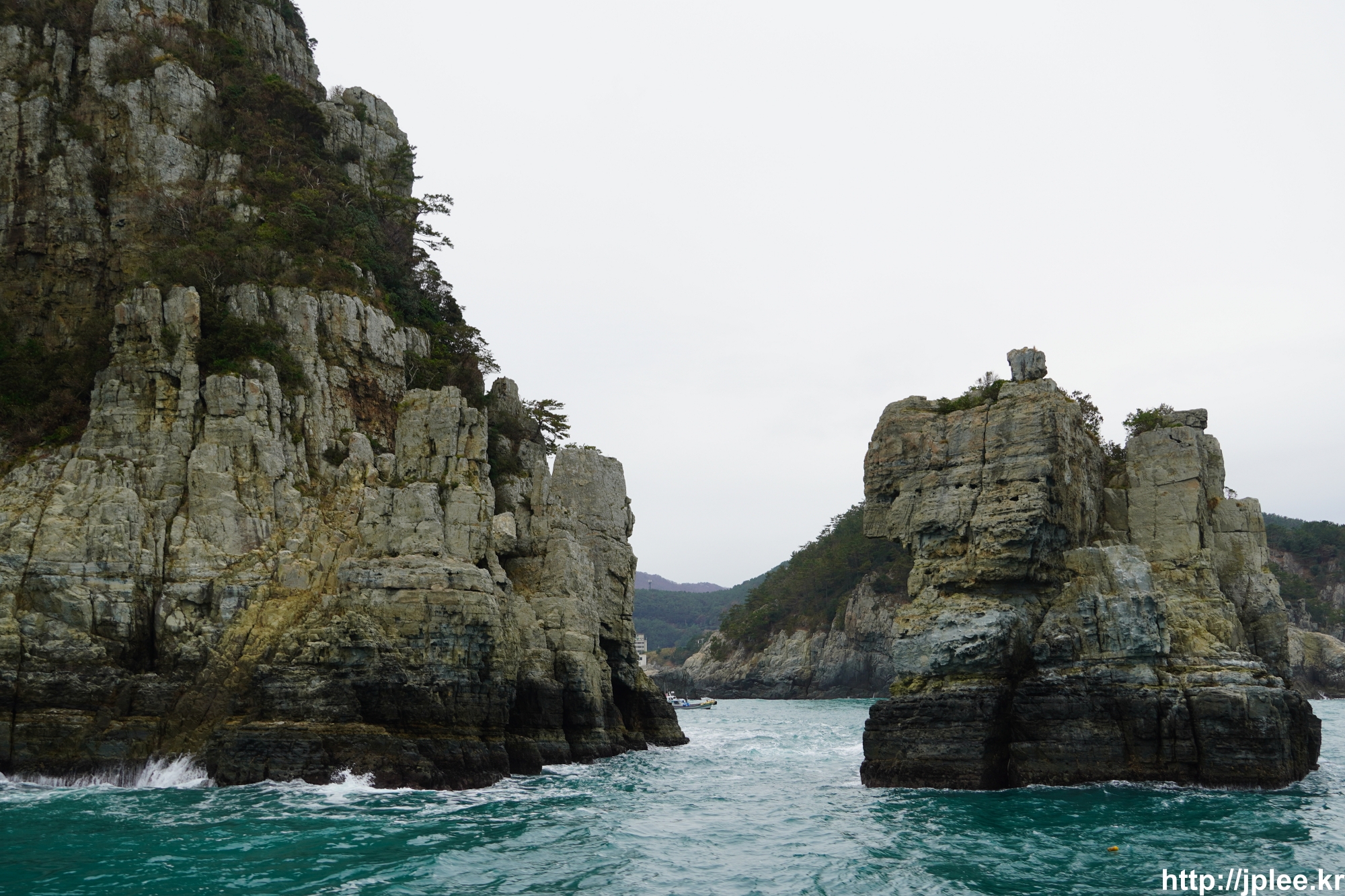 유람선을 타고 해금강을 한바퀴 돌고나서 외도에 내려주면