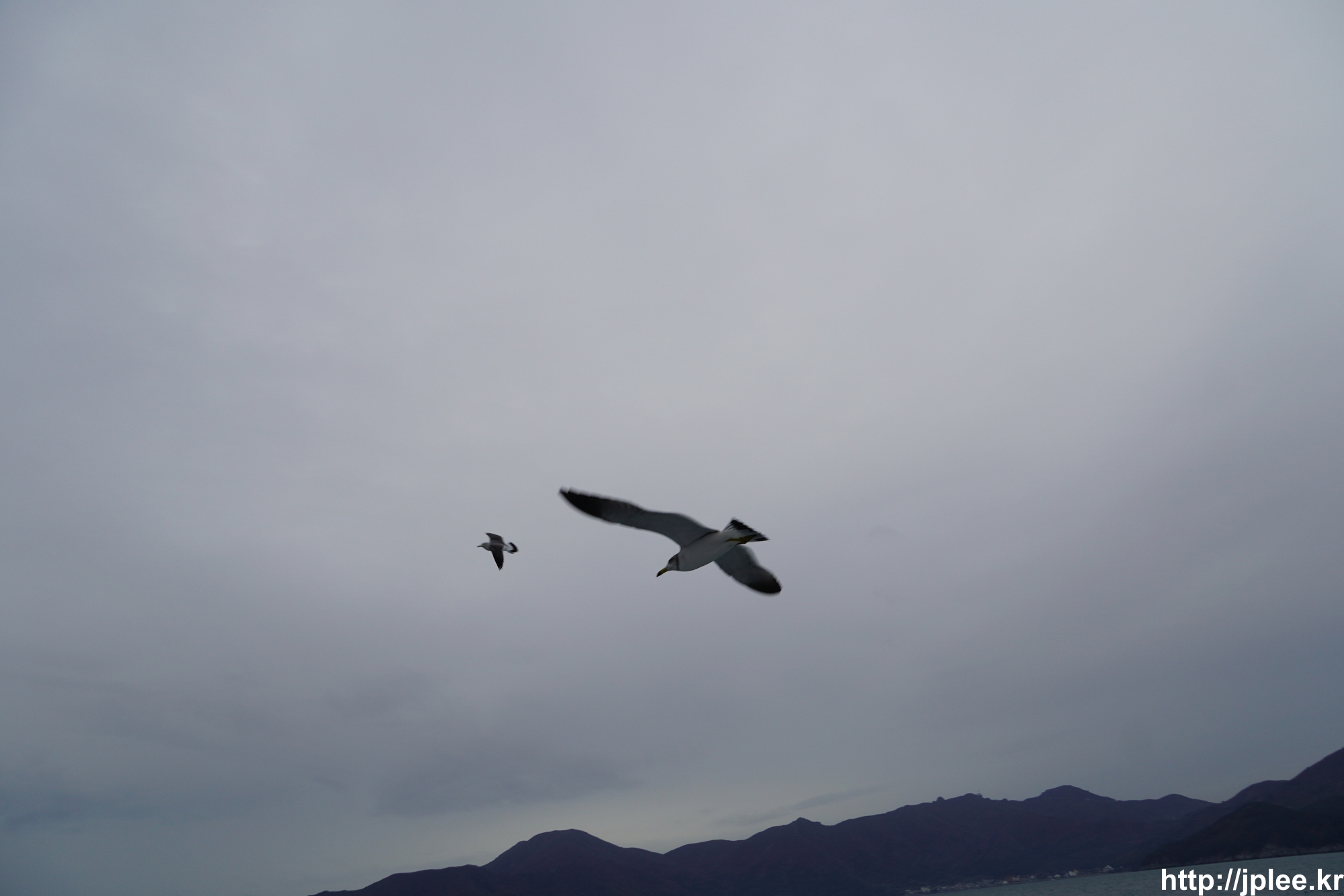 배를 타자마자 갈매기들이 따라오는데 당연하다는 듯이 따라오는 걸 보면
