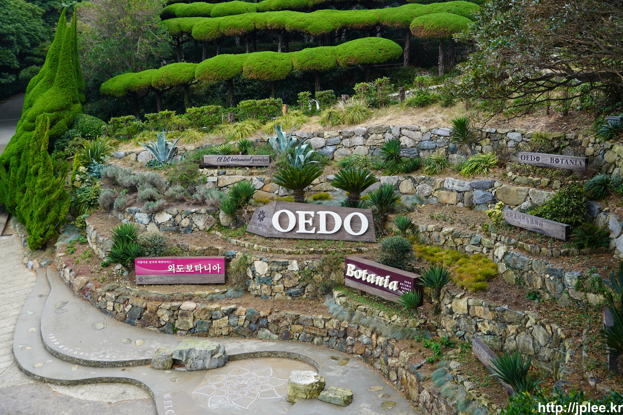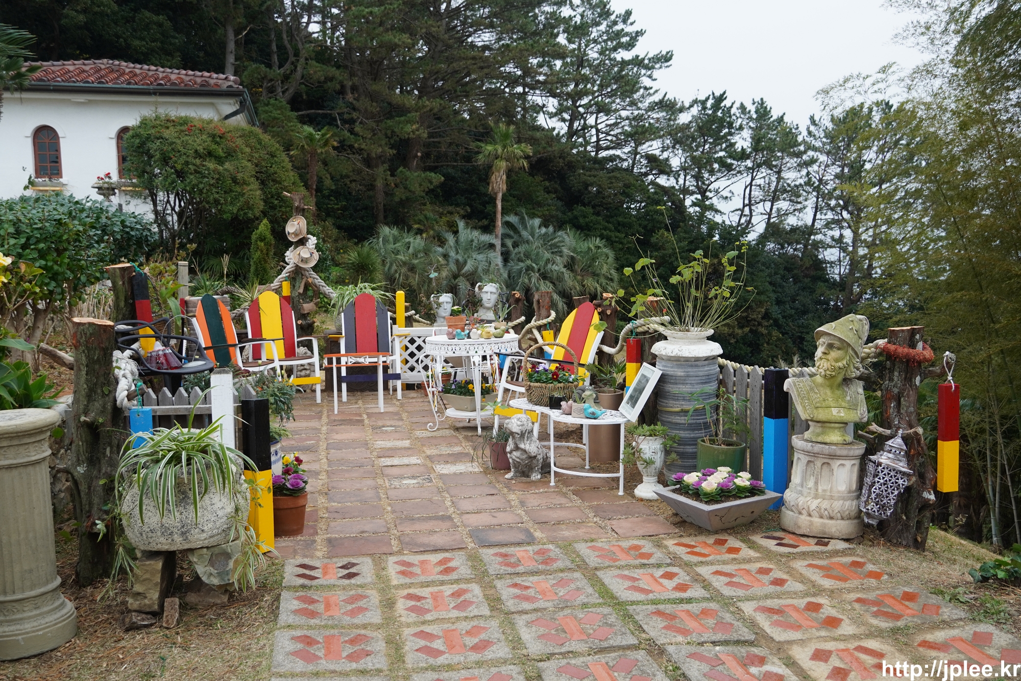 조금 더 올라가니 아까 올라왔던 이국적인 정원이 한눈에 들어오는 전망공간이 있었다.