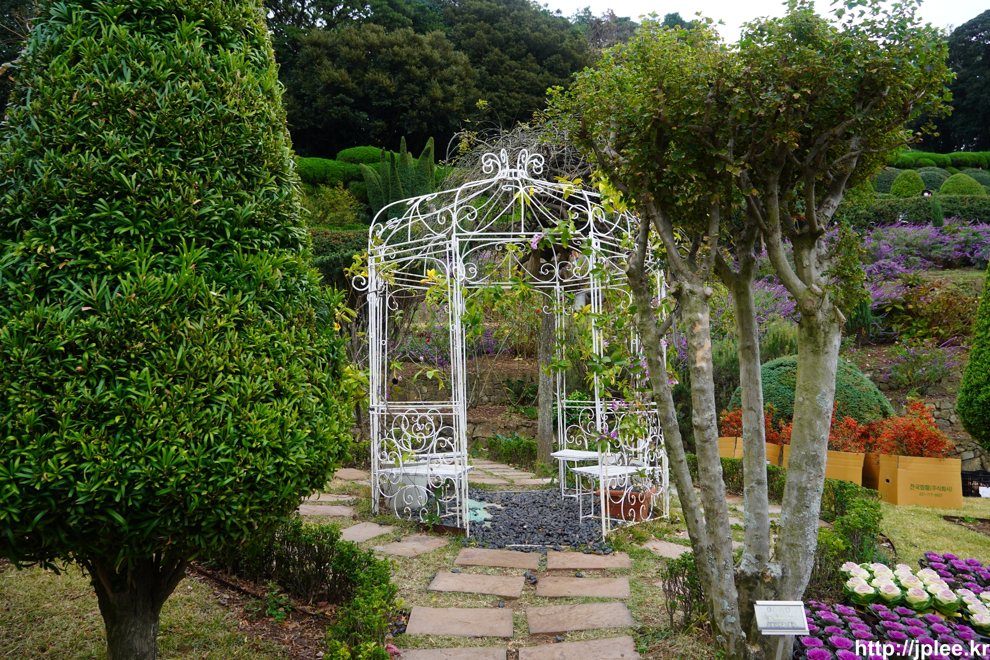 다음은 나무가 요상한 모양으로 정리되어 있는 정원.
