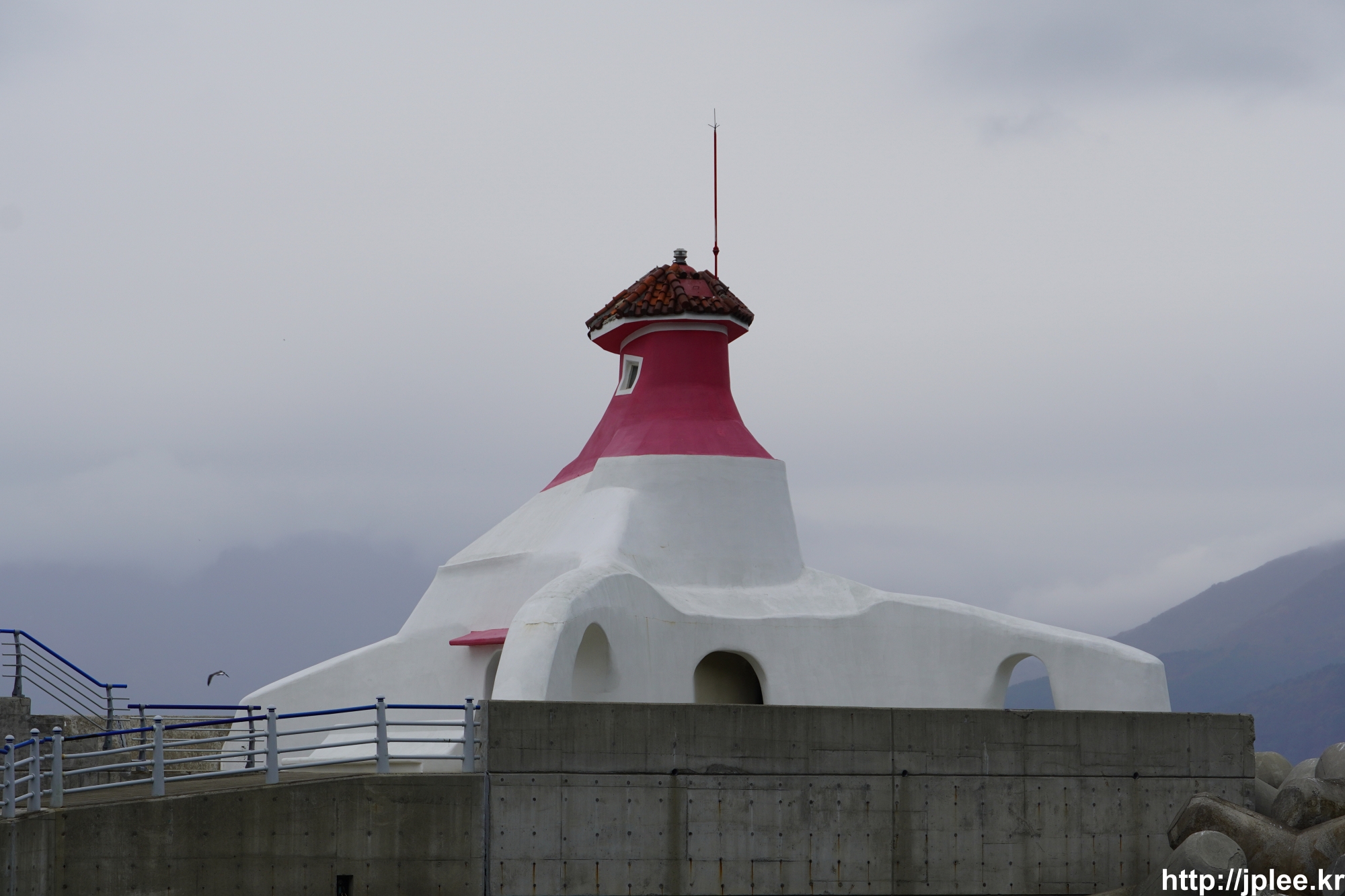 선착장 옆쪽에 등대가 참 특이한 디자인이었는데..