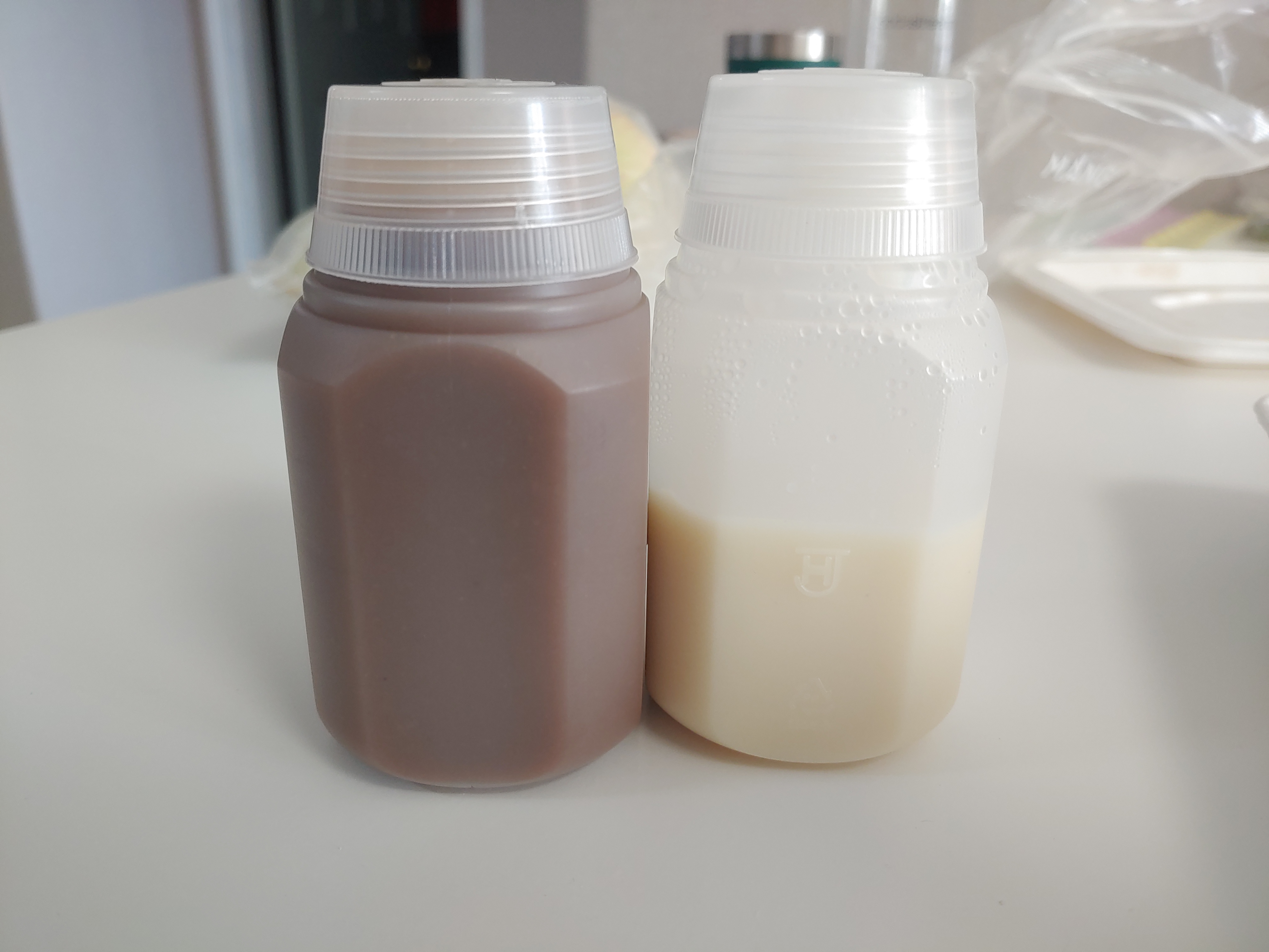 저 옛날 급식가게의 물통/국통같은 느낌의 용기에 소스와 스프를 따로 담아주고,