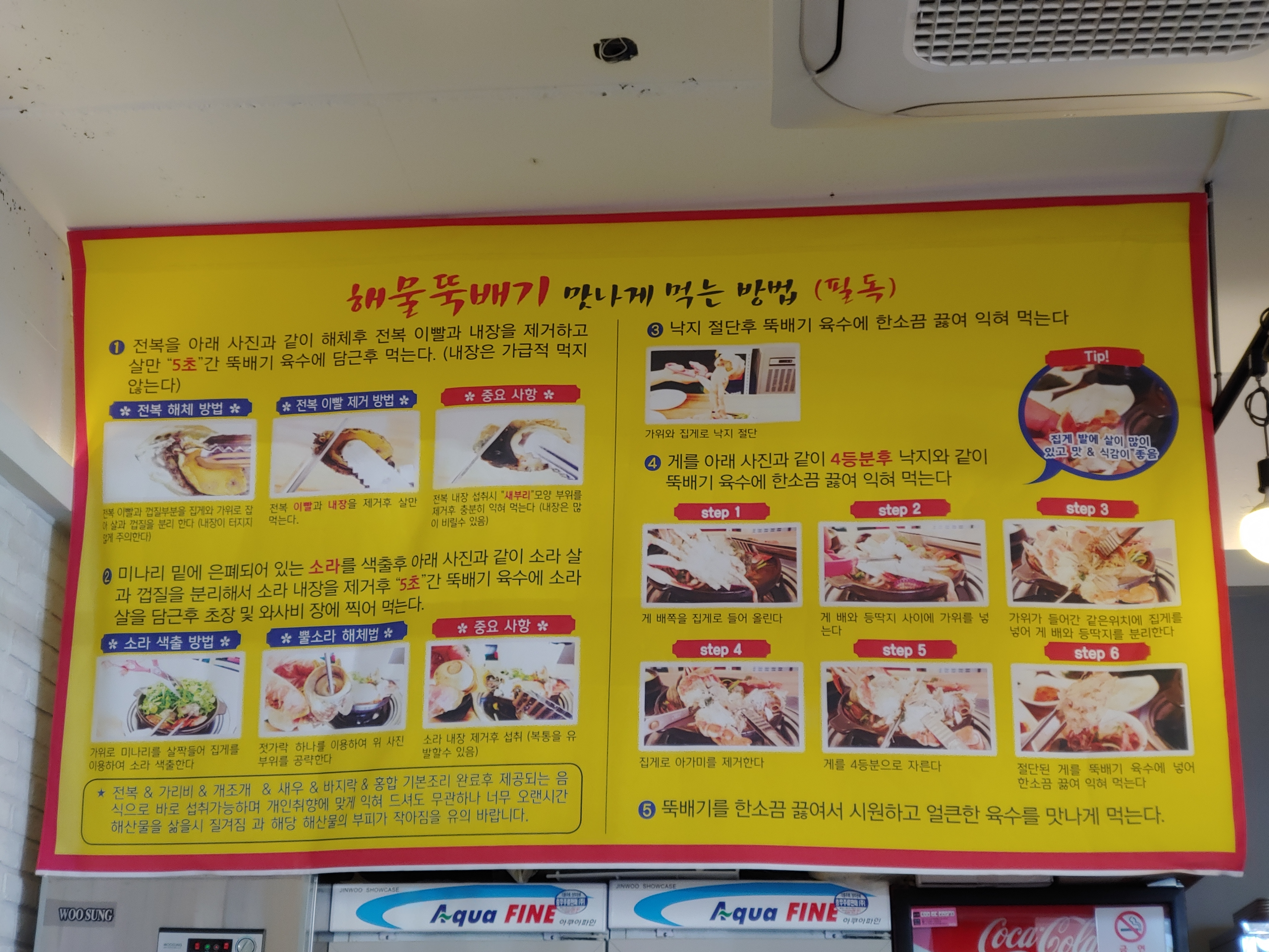 가게앞에 차를 대고 들어가보니 각종 해물을 먹는 방법이 안내되어있다.