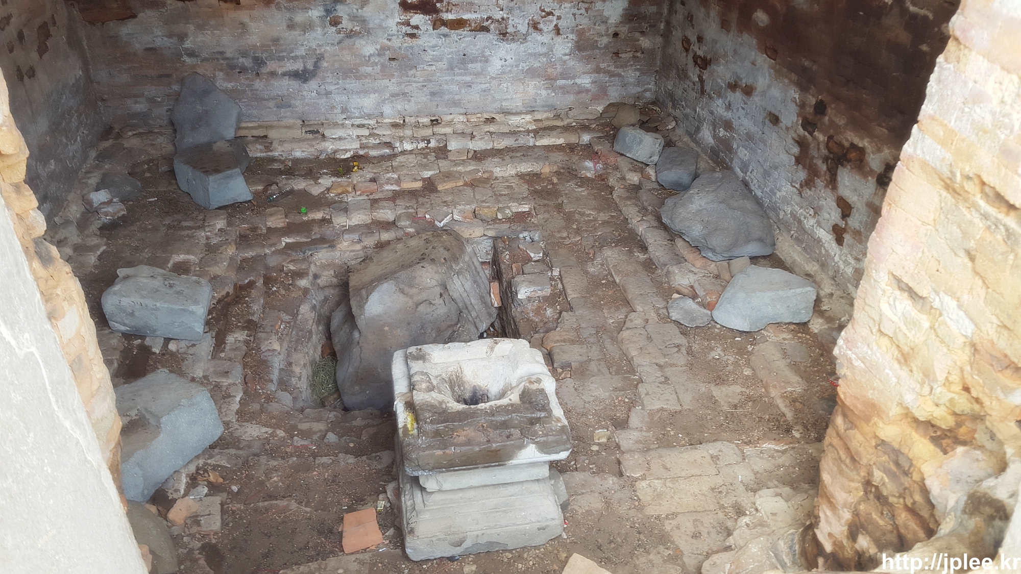 파괴된 요니의 받침대만 덩그러니 놓여있었다.