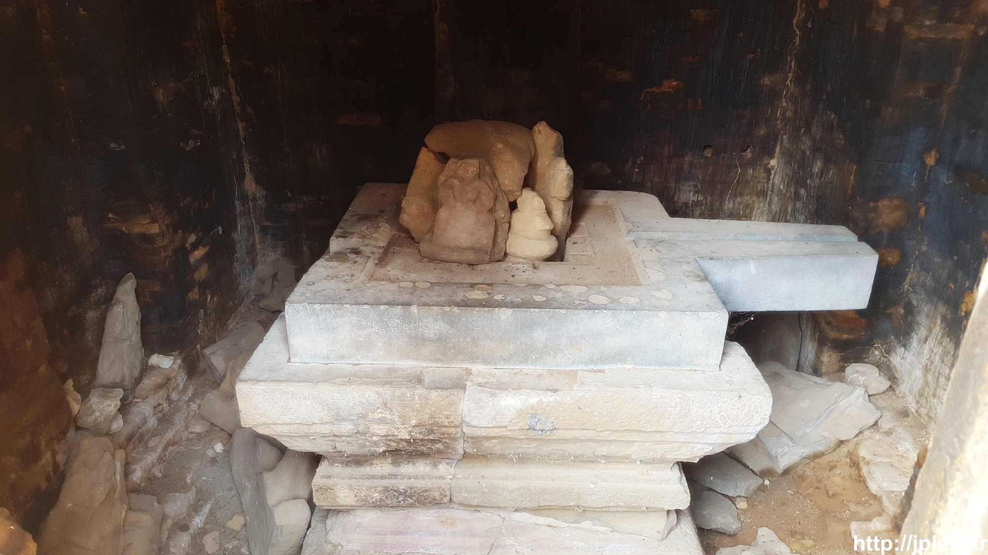 파괴된 요니의 받침대만 덩그러니 놓여있었다.