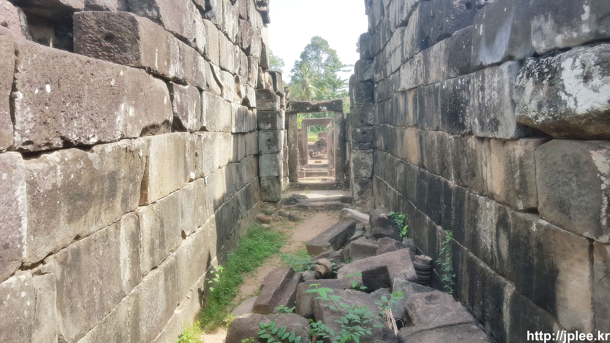 입구의 좌우로는 라테라이트로 만들어진 도서관의 폐허가 있었고