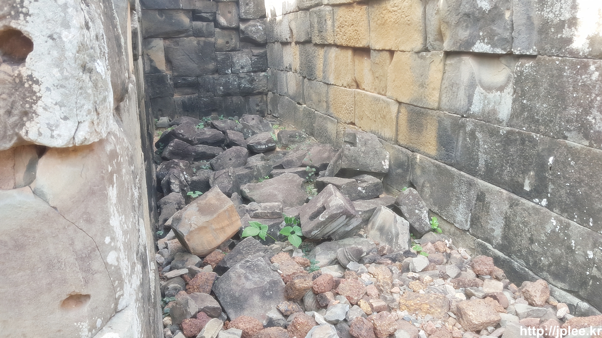입구의 좌우로는 라테라이트로 만들어진 도서관의 폐허가 있었고
