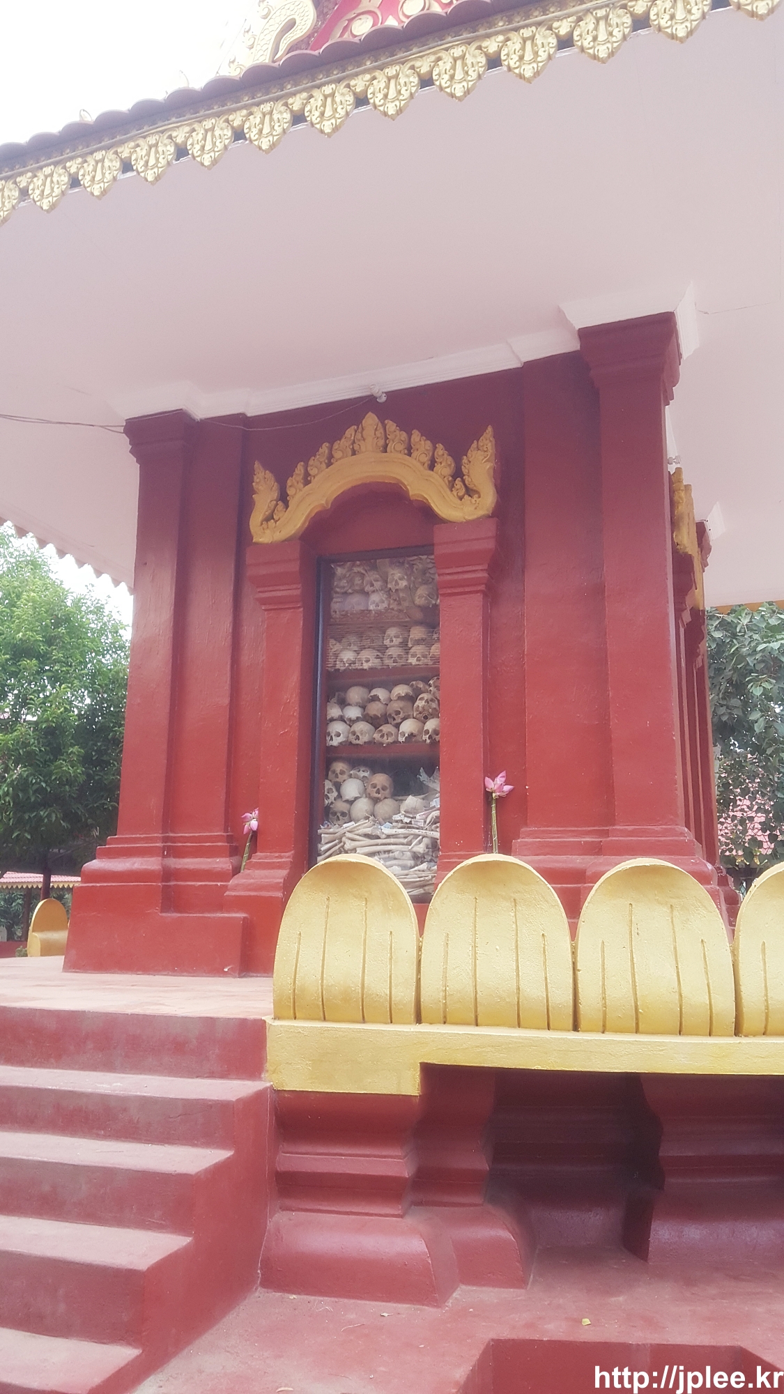 내부의 공양탑에는 크메르루즈의 킬링필드 당시 희생당한 사람들의