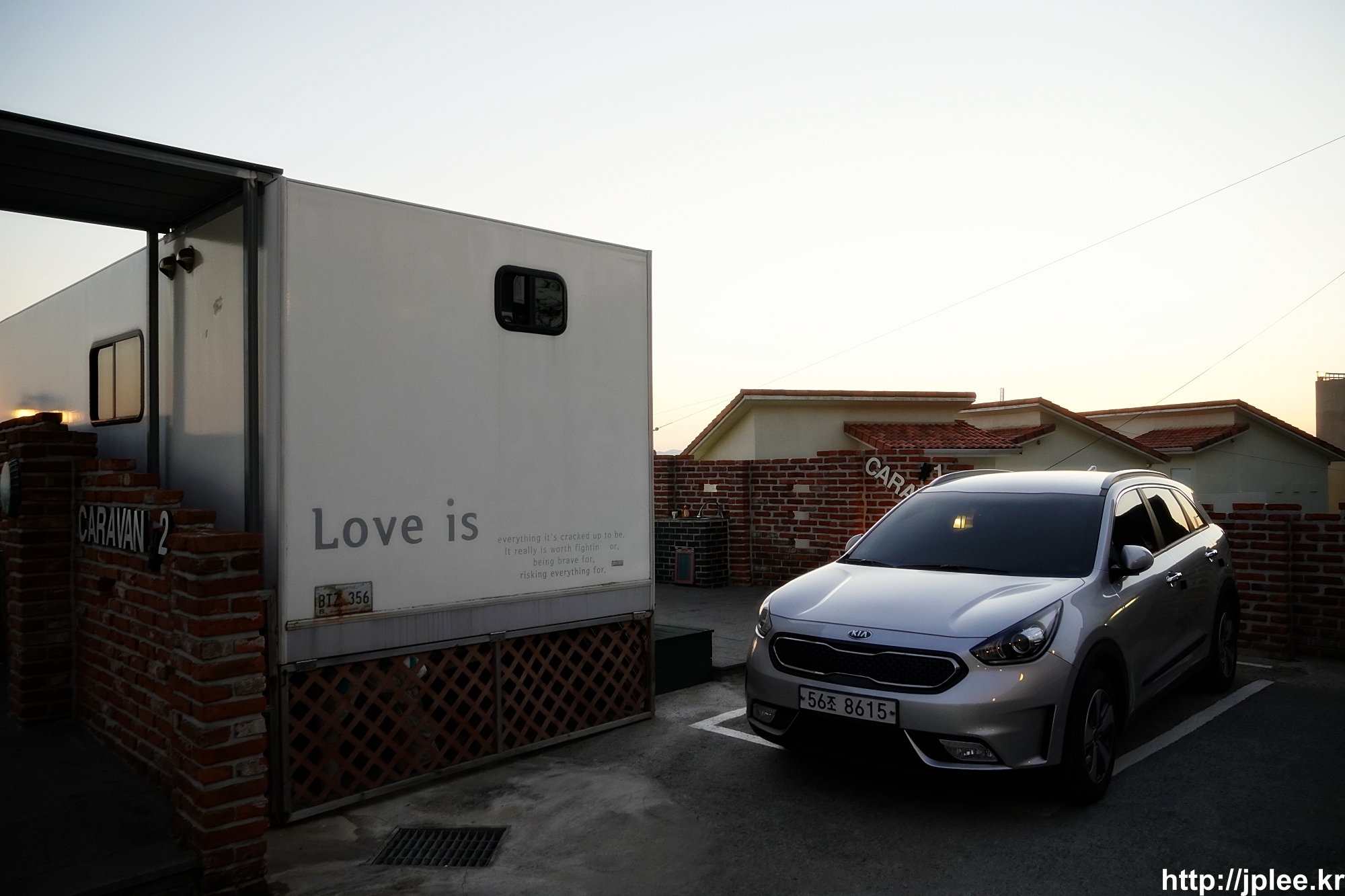 마지막 날의 숙소는 캐비넷 팬션의 카라반을 빌렸다.