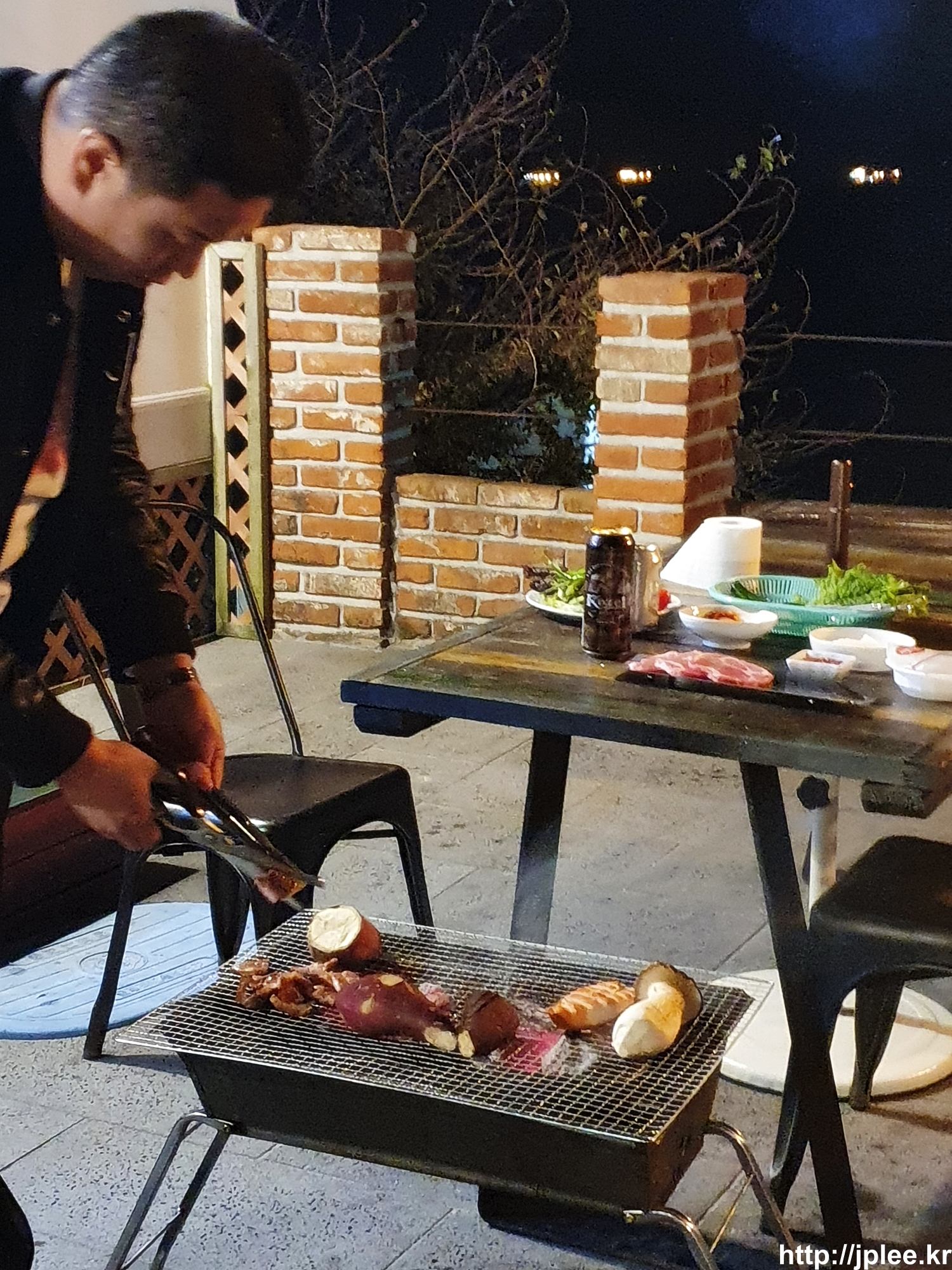 바람이 세게 부는 덕분에 연기를 피해서 고기 굽기가 편했다.